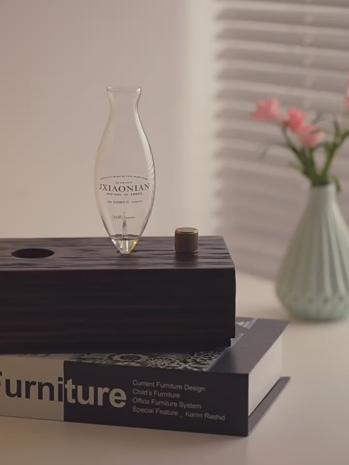 手吹きガラスとウォールナット、異なる素材が奏でる光と香りのハーモニー。